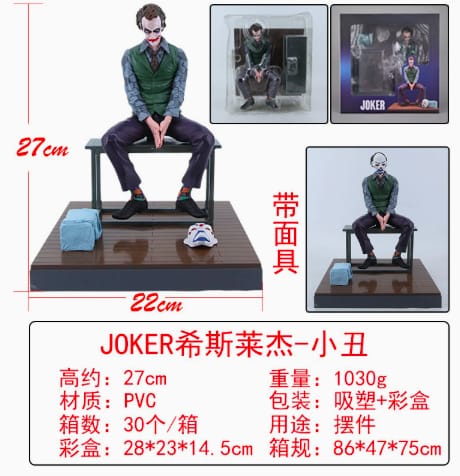Heath Ledger’s Joker character figurine with mask and briefcase.